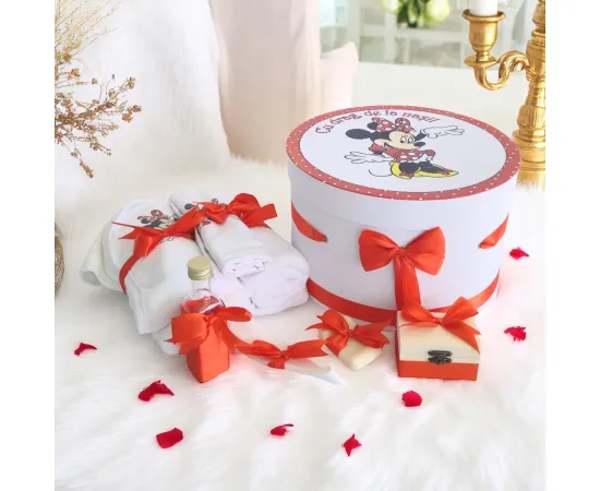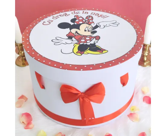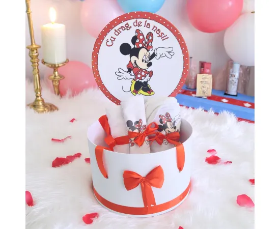 Trusou Botez cu 8 Piese Imprimat, Minnie Mouse, Culoare Rosu - BAB101