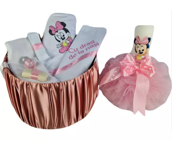 Trusou botez, 10 piese brodate, Model Minnie, Roz- BT30