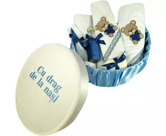Trusou botez, 10 piese brodate, Model Ursulet, Albastru - BT43