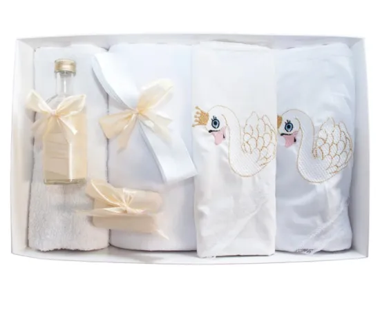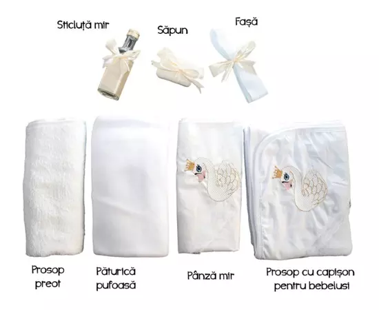 Trusou Botez 7 Piese cu Text Imprimat, Alb-Crem, Lebada - TB36