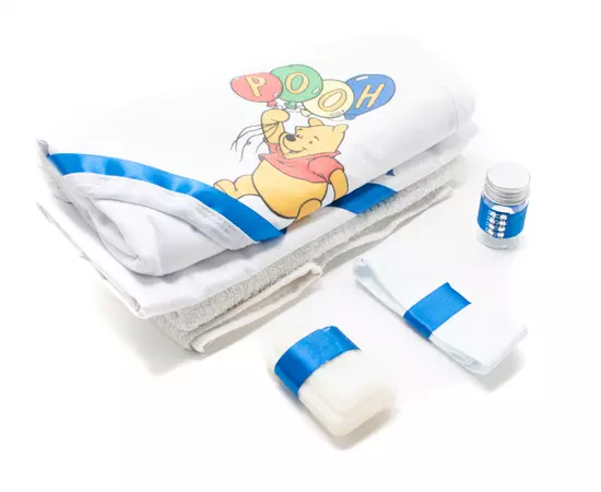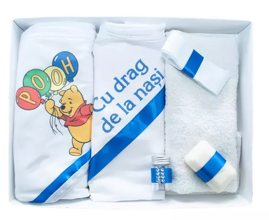 Trusou Botez, 6 Piese cu Text Imprimat "Cu drag de la nasi", Albastru, Winnie the Pooh - TB142