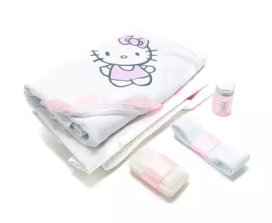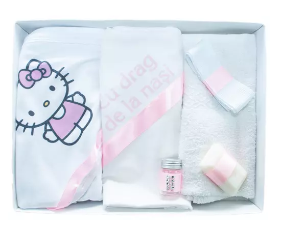 Trusou Botez, 6 Piese cu Text Imprimat "Cu drag de la nasi", Roz, Hello Kitty - TB140