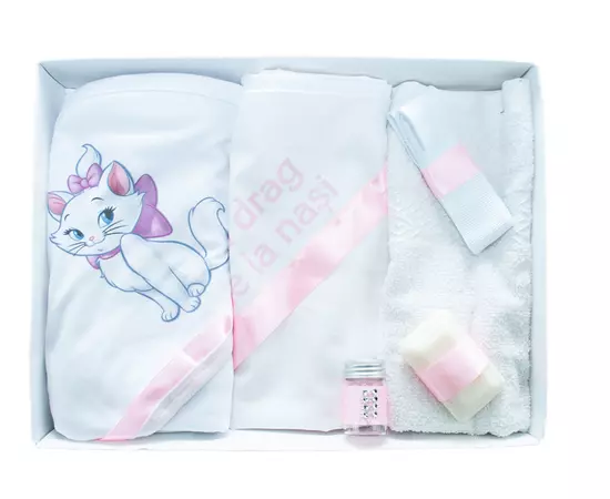 Trusou Botez, 6 Piese cu Text Imprimat "Cu drag de la nasi", Roz, Pisica - TB138