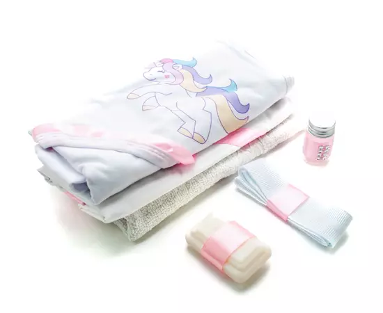Trusou Botez, 6 Piese cu Text Imprimat "Cu drag de la nasi", Roz, Unicorn - TB145