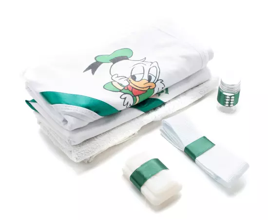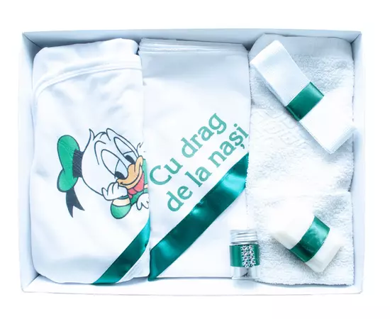 Trusou Botez, 6 Piese cu Text Imprimat "Cu drag de la nasi", Verde, Donald Duck - TB147