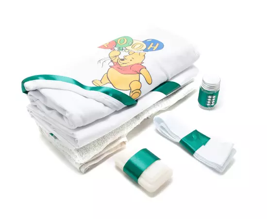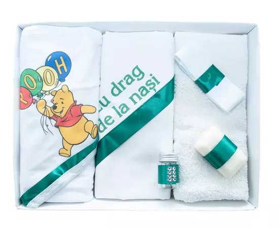 Trusou Botez, 6 Piese cu Text Imprimat "Cu drag de la nasi", Verde, Winnie the Pooh - TB144