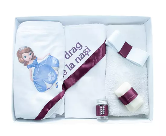 Trusou Botez, 6 Piese cu Text Imprimat "Cu drag de la nasi", Visiniu, Sofia - TB137