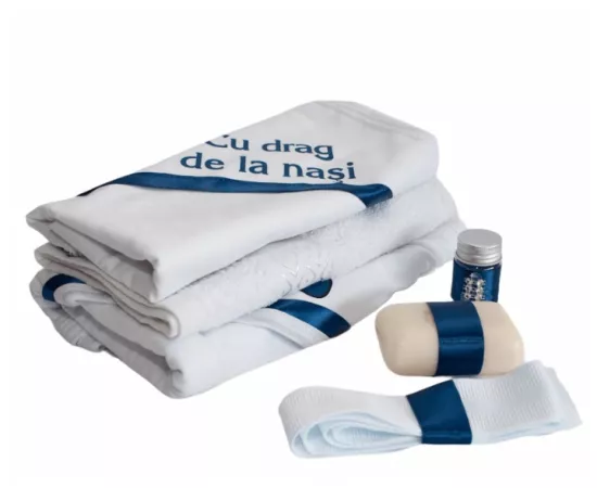 Pentru ca botezul este un eveniment important pentru parinti si nasi, venim in ajutor cu un set care contine toate cele necesare pentru crestinarea bebelusului