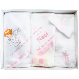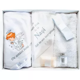 Pentru ca botezul este un eveniment important pentru parinti si nasi, venim in ajutor cu un set care contine toate cele necesare pentru crestinarea bebelusului