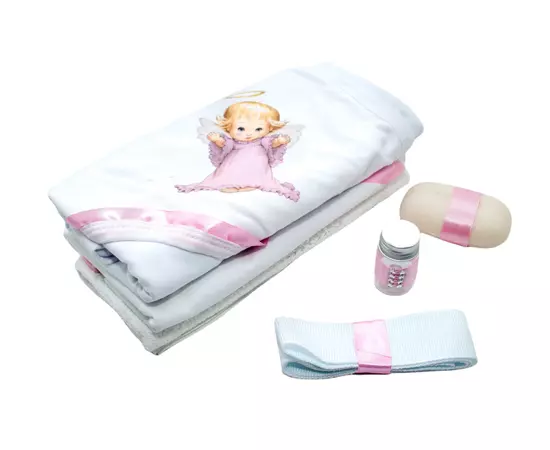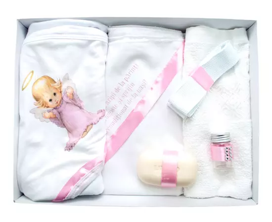 Pentru ca botezul este un eveniment important pentru parinti si nasi, venim in ajutor cu un set care contine toate cele necesare pentru crestinarea bebelusului