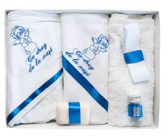 Pentru ca botezul este un eveniment important pentru parinti si nasi, venim in ajutor cu un set care contine toate cele necesare pentru crestinarea bebelusului