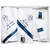 Trusou Botez 6 piese personalizat cu broderie - "Cu drag de la Nasi" - Ingeras - ALB - BLEUMARIN- TB117