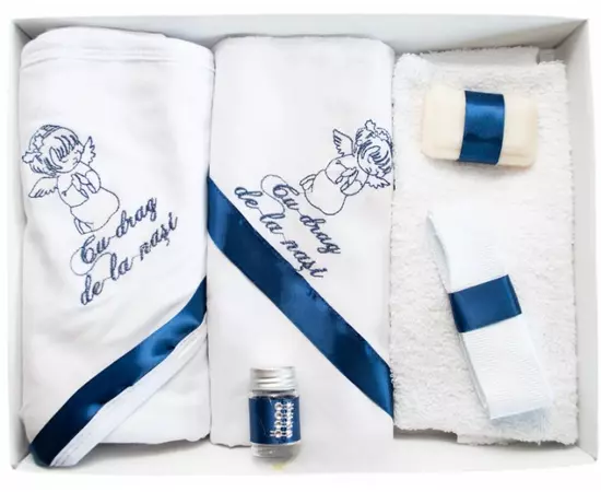 Pentru ca botezul este un eveniment important pentru parinti si nasi, venim in ajutor cu un set care contine toate cele necesare pentru crestinarea bebelusului
