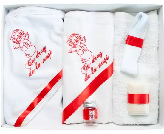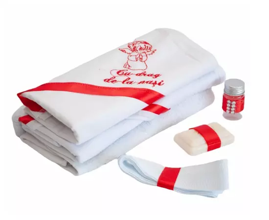 Pentru ca botezul este un eveniment important pentru parinti si nasi, venim in ajutor cu un set care contine toate cele necesare pentru crestinarea bebelusului