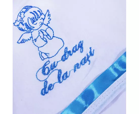 Trusou Botez 6 piese personalizat cu broderie - "Cu drag de la Nasi" - Ingeras - ALB - TURCOAZ - TB113