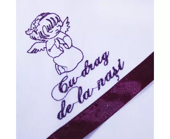 Trusou Botez 6 piese personalizat cu broderie - "Cu drag de la Nasi" - Ingeras - ALB - VISINIU - TB109