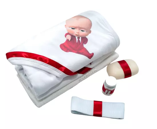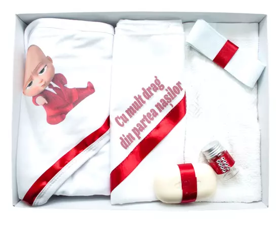 Trusou Botez 6 Piese Personalizat cu Broderie - "Cu drag din partea nasilor", Rosu, Baby Boss - TB177