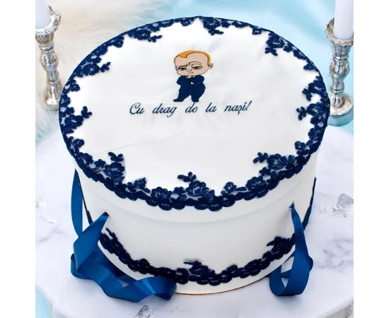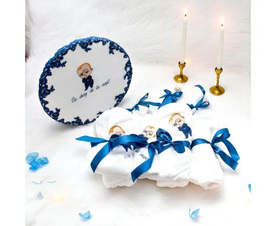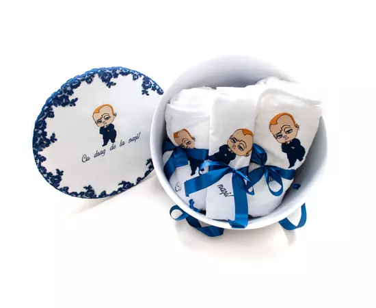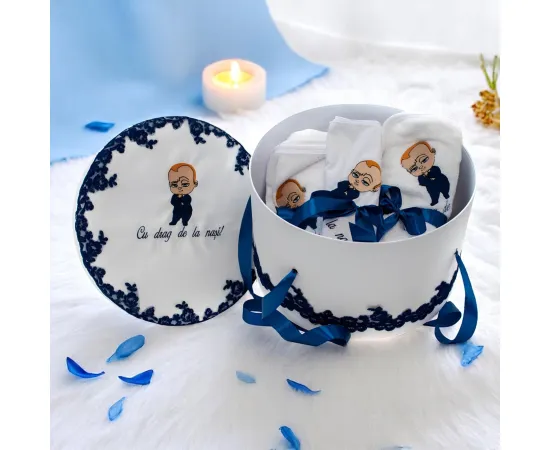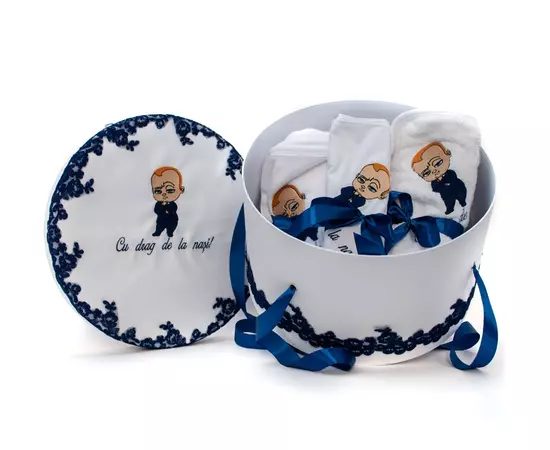 Trusou Botez cu 8 Piese Brodat, Boss Baby, Culoare Bleumarin - TB08