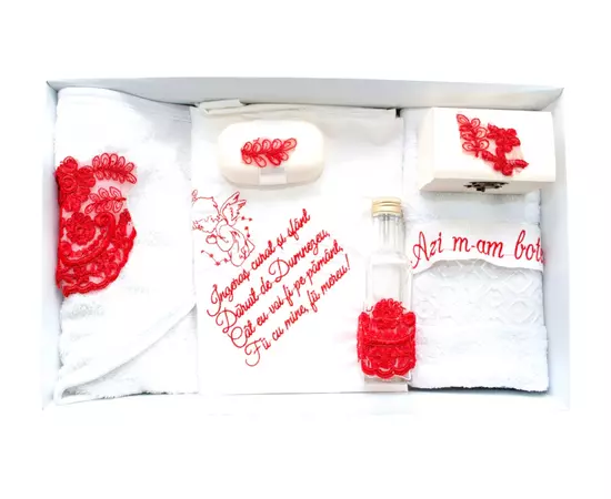 Trusou Botez, 7 Piese, cu Broderie "Azi m-am crestinat", Rosu - TB173