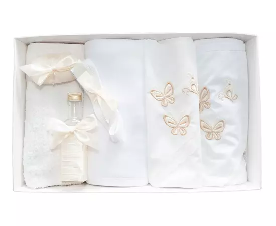 Trusou Botez 7 Piese cu Broderie, Crem, Fluturi - TB135