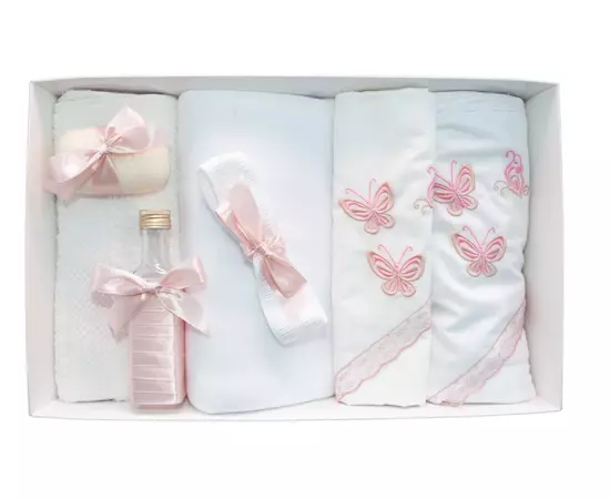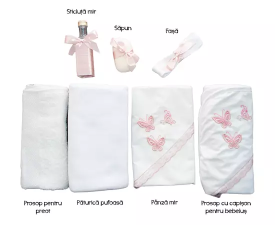 Trusou Botez 7 Piese cu Broderie, Roz, Fluturi - TB136