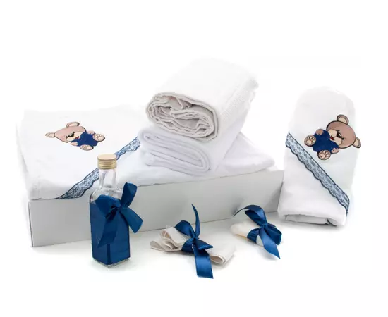 Trusou Botez 7 Piese, Bleumarin, Ursulet Brodat - TB153
