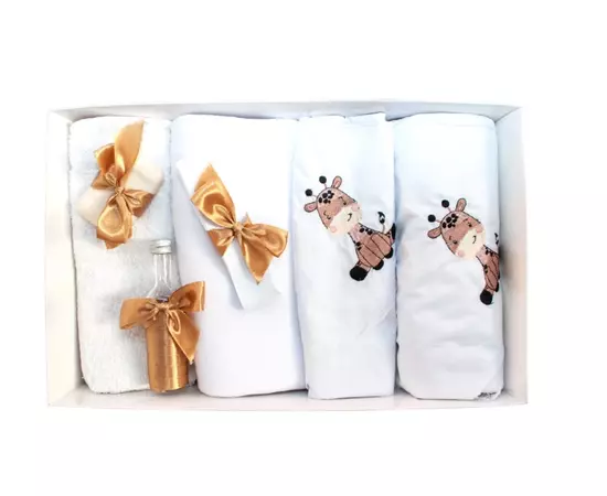 Trusou Botez 7 Piese Personalizat cu Broderie, Alb-Maro, Girafa - TB42
