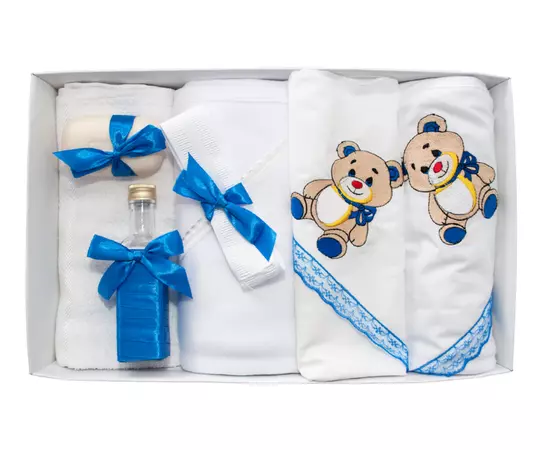 Trusou Botez 7 Piese Personalizat cu Broderie, Albastru, Ursuleti - TB128