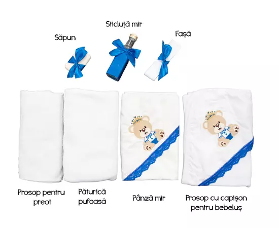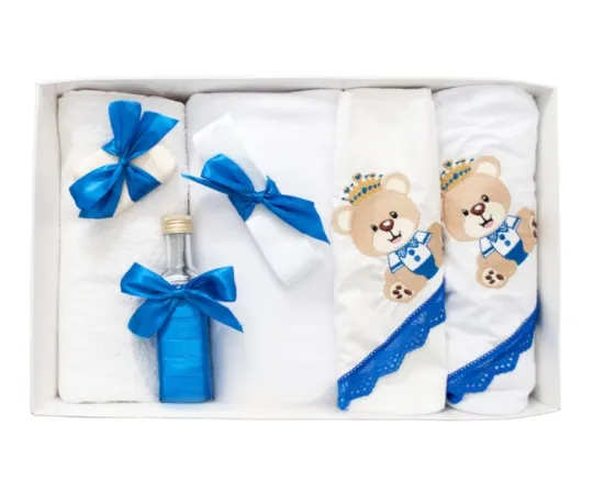 Trusou Botez 7 Piese Personalizat cu Broderie, Albastru, Ursuletul Print - TB48