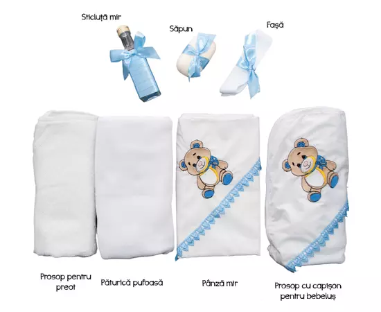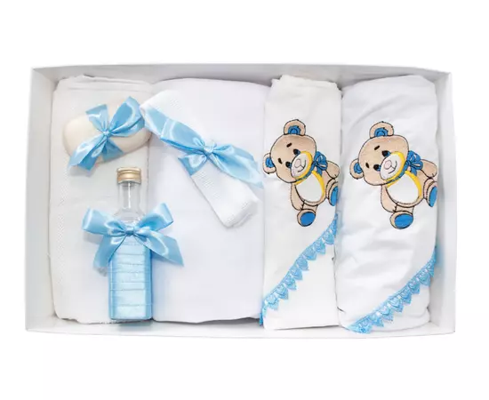 Trusou Botez 7 Piese Personalizat cu Broderie, Bleu, Ursuleti - TB131