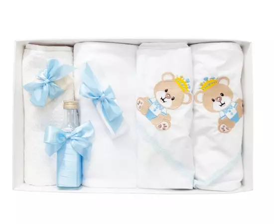 Trusou Botez 7 Piese Personalizat cu Broderie, Bleu, Ursuletul Print - TB47