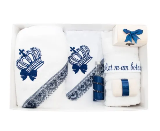 Trusou Botez 7 Piese Personalizat cu Broderie, Bleumarin, Coroana Regala - TB126