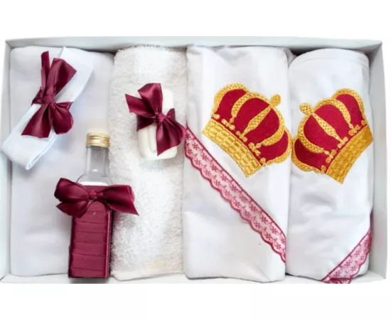 Trusou Botez 7 piese, personalizat cu broderie - "Cu drag de la Nasi" - Coroana de print VISINIE - TB67