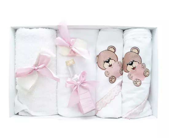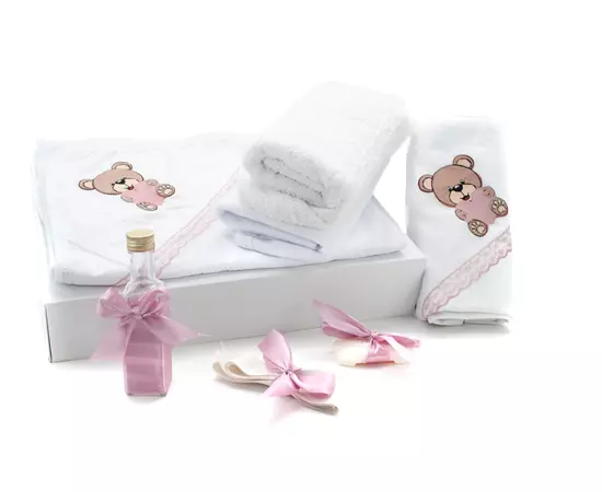 Trusou Botez 7 Piese, Roz Pudra, Ursulet Brodat - TB159