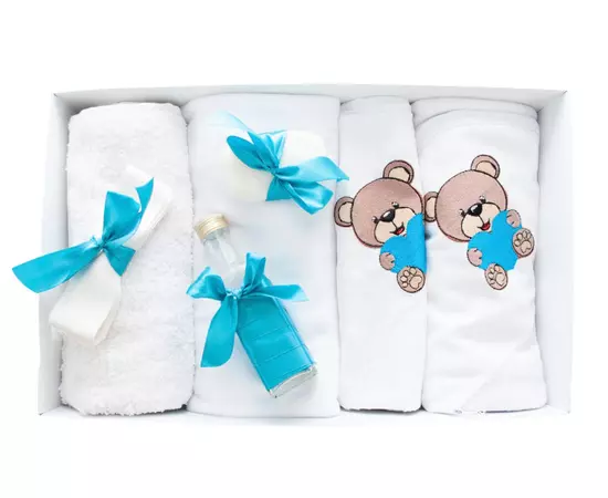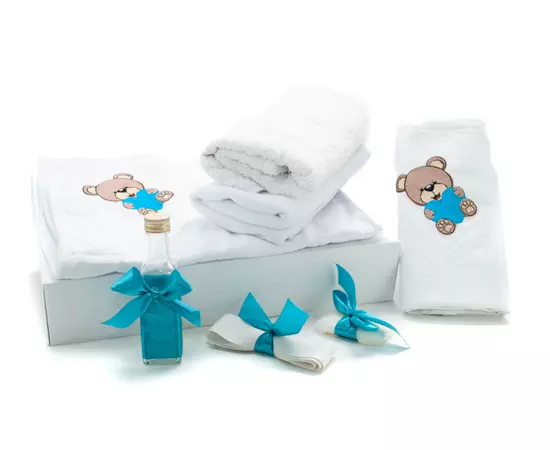 Trusou Botez 7 Piese, Turcoaz, Ursulet Brodat - TB158