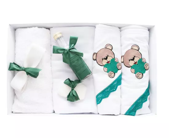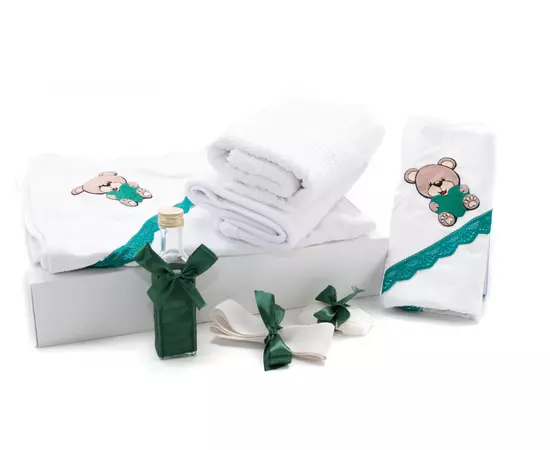 Trusou Botez 7 Piese, Verde, Ursulet Brodat - TB155