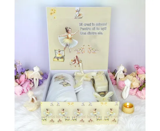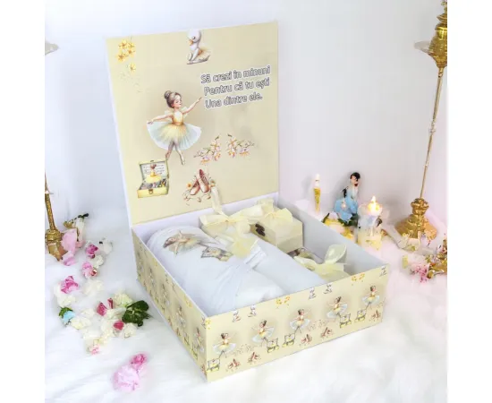 Trusou Botez cu 8 Piese, Balerina, Culoare Crem Natur - TB182