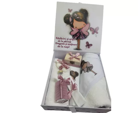 Pentru ca botezul este un eveniment important pentru parinti si nasi, venim in ajutor cu un set care contine toate cele necesare pentru crestinarea bebelusului