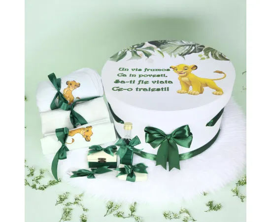 Trusou Botez cu 8 Piese Imprimat, Simba Lion King, Culoare Verde - TB186
