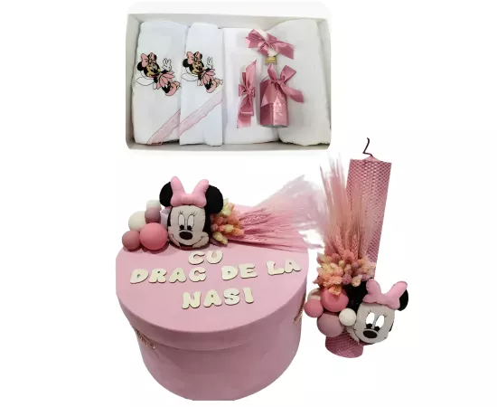 Trusou botez, 9 Piese cu Minnie Mouse din Catifea- BAB162
