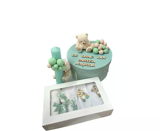 - Toate aceste elemente sunt prezentate într-un ambalaj elegant, potrivit pentru a fi oferit ca un cadou special, semn al bucuriei și recunoștinței față de acest moment deosebit din viața familiei.