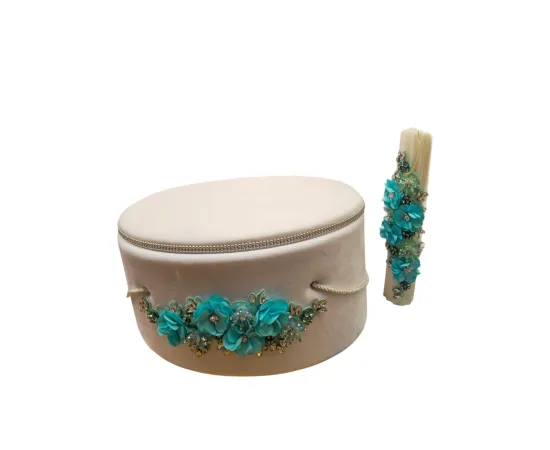 Trusou Botez cu 8 Piese + Cutie Catifea + Lumanare - Flori Tucoaz - TB905
