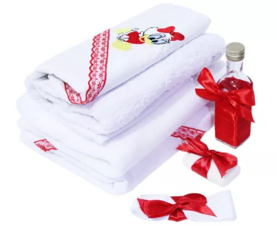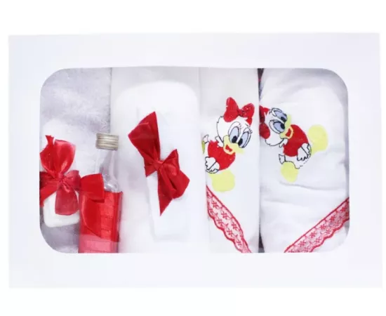 Trusou Botez cu 7 piese - Daisy Duck brodata - ALB - ROSU - TB78