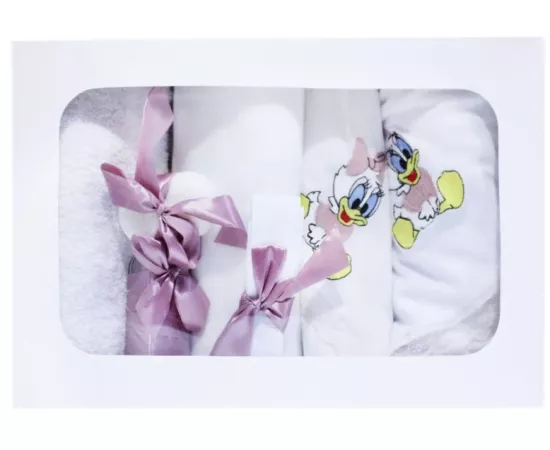 Trusou Botez cu 7 piese - Daisy Duck brodata - ALB - ROZ PUDRAT INCHIS - TB77