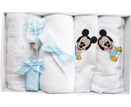 Trusou Botez cu 7 piese - Mickey Mouse brodat - ALB - ALBASTRU - TB75