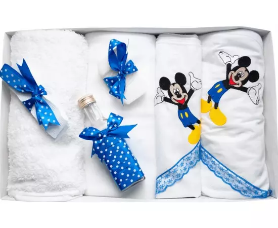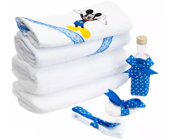 Trusou Botez cu 7 piese - MIckey Mouse brodata - ALB - ALBASTRU - TB84