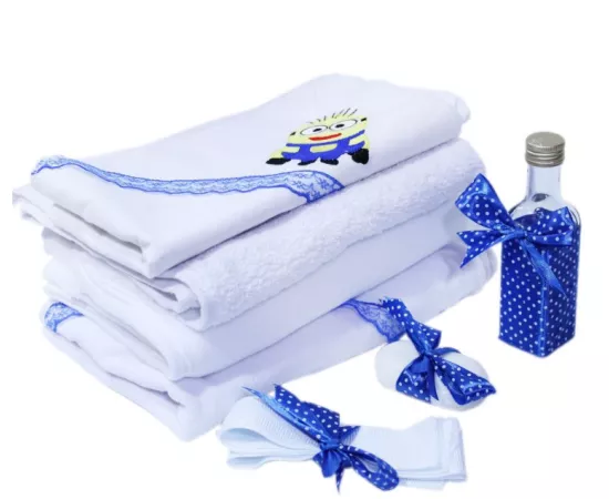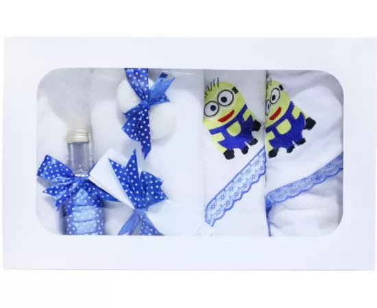 Trusou Botez cu 7 piese - Minion brodat - ALB - BLEUMARIN -TB70