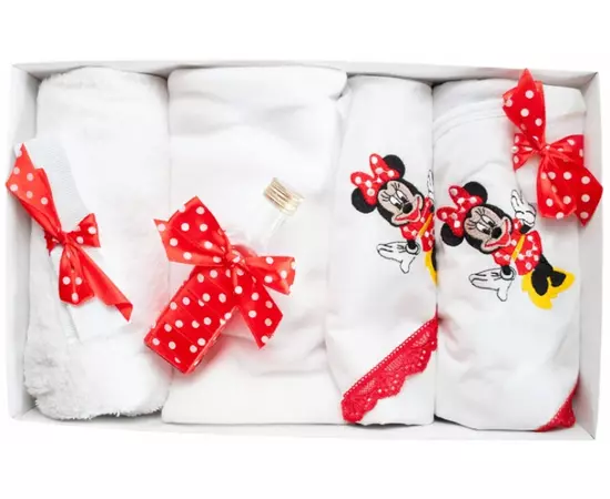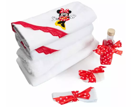 Trusou Botez cu 7 piese - Minnie Mouse brodata - ALB - ROSU - TB82