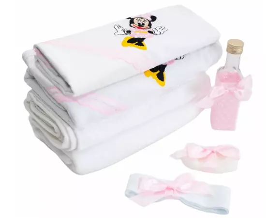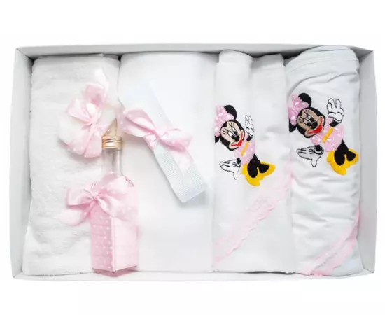 Trusou Botez cu 7 piese - Minnie Mouse brodata - ALB - ROZ - TB83