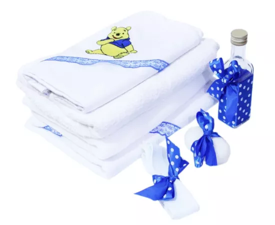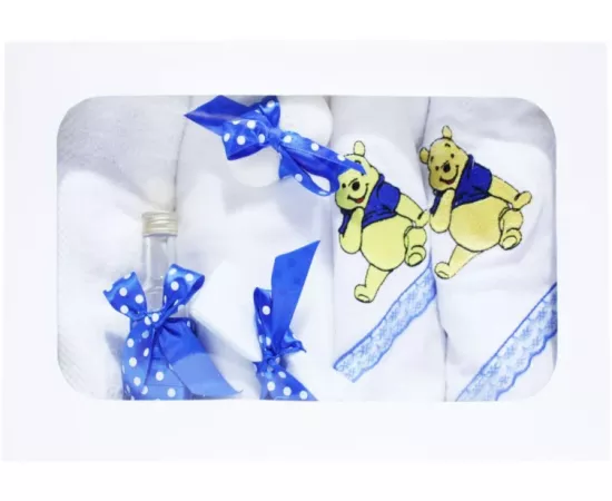 Trusou Botez cu 7 piese - Winnie-the-Pooh brodat - ALB -ALBASTRU -TB73